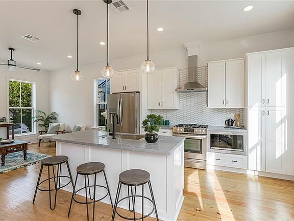 A modern take on a Creole Cottage in the historic treme neighborhood! This fabulous new construction features two bedrooms upstairs, each with a private bath and walk in closet. Stackable washer dryer is also located upstairs. The open floor plan downstairs has an abundance of natural light, a built in desk, and a half bath. Stainless steel appliances throughout the kitchen. Backyard deck requires minimal maintenance.