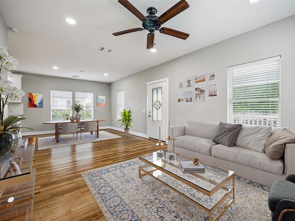 Move-in-ready single-story home near Downtown Houston! Taken to the studs and completely renovated in 2021, this 3-bedroom home includes an extra room perfect as a home office or fourth bedroom. The house features a new roof, PEX plumbing, upgraded electrical, and hardwood floors throughout. Situated on a fully fenced corner lot with great landscaping, an automated gate, concrete walkway, and a large driveway with ample parking. The spacious backyard is ideal for summer cookouts and outdoor activities, and features apple, pear, plum, jujube, and pomegranate trees that fruit annually. Prime location just minutes from Downtown attractions like POST Houston, Daikin Park, Toyota Center, Discovery Green, bars, restaurants, and more. Schedule your showing today!