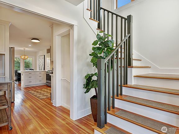 Sweet Tangletown home with charm of yesteryear, expanded and updated with a studs-out remodel in ’05 and refreshed in 2025. Light-filled bungalow with abundant windows throughout. Chef's kitchen opens to a dining area and gracious French doors usher you to the patio and private, level urban oasis backyard. Four spacious bedrooms, including second floor primary suite with walk-in closet and a spa-like bath. Lower-level rec-room/media/flex room can also be used as guest suite with its own 3/4 bath. Oversized attached garage with storage. Situated on a quaint Green Lake street, close to sought-after recreation & amenities! Walk to Green Lake, Tangletown eateries & shops, and highly rated schools like MacDonald Elementary. Enjoy!