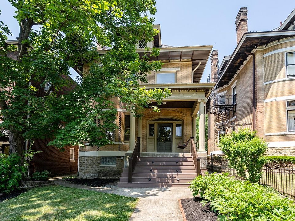 Historic brick home just steps to Eden Park boasting 12 ft. ceilings, carved staircase, pocket doors & gorgeous moldings. Beautiful living room w/hardwood floors & decorative fireplace opens to the formal dining room w/pocket doors. Kitchen updates include granite counters & stainless steel appliances. 3rd floor provides endless possibilities with a bedroom, living space, full bath. Two car garage with underground tunnel to basement. New AC 2023; New electric Panel 2023; Showings start 6/16.