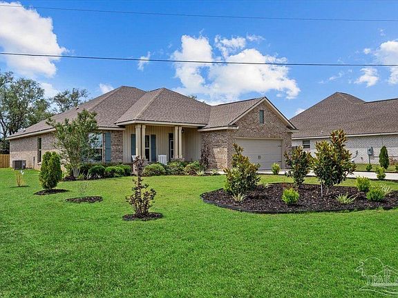 Better than new! This immaculate 4 bed/2 bath home in a highly desirable neighborhood with NO HOA was built in 2019 and has been meticulously maintained. The ever-popular Rodessa floor plan offers an open, spacious layout with numerous upgrades throughout, including luxury wood-look ceramic tile flooring (carpet in the bedrooms), quartz countertops in the kitchen, baths, and fireplace profile, and gorgeous tray ceilings with crown molding. The kitchen features stainless steel appliances, under-mount sinks, and an enormous island perfect for entertaining. The living room includes a cozy fireplace with a stunning custom mantle. The primary suite boasts a custom-tiled walk-in shower, separate soaking tub, double vanities, and a generous walk-in closet. Exterior features include brick and Hardie board siding, 30-year architectural shingles, and beautiful new front yard landscaping with native trees, flowering plants, and mulched beds. Energy-efficient features include vinyl Low-E windows and radiant barrier roof decking. Conveniently located just 20 minutes to Pensacola Beach, 15 to Navarre Beach, and 5 minutes to the Gulf Breeze Zoo. Don’t miss this turn-key treat in a fantastic location!