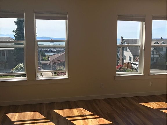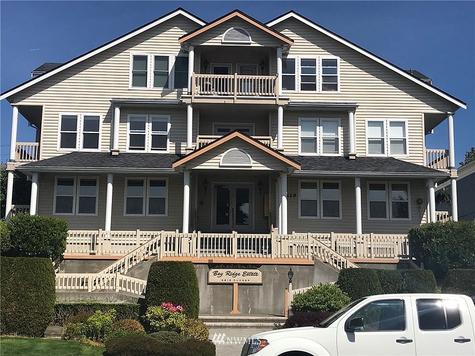 Sound view, spectacular sunsets...one of Everett's rare smaller condo complexes (only 10 units). Attractive, well maintained condo complex, (Bay Ridge Estates), located on bluff on Rucker Avenue just north of town. Unit faces west overlooking the Sound/mountains. Light second floor corner unit, covered deck off living room, 2 bdrm, 2 full bath. Top-down bottom-up shades. Community garage, elevator, fire sprinkler, bldg entry call system, earthquake ins. Dogs, cats welcome (some restrictions).