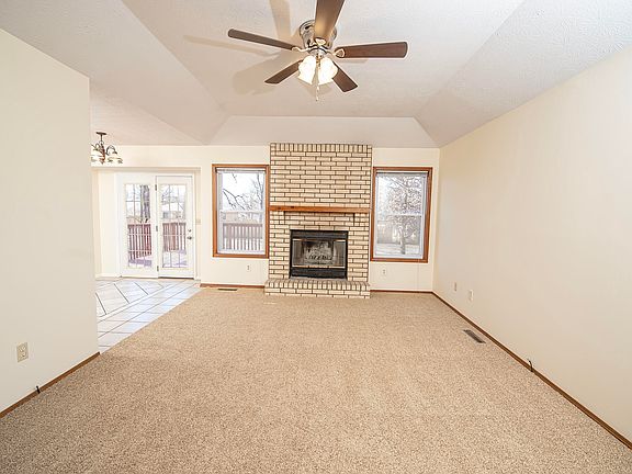 This clean Southside ranch home has been well cared for. From the front door you will notice warm off-white updated paint, new plush Stainmaster carpet, and a brick wood-burning fireplace. The living room is large and open to the tiled kitchen dining area. The laundry room is tucked in behind pocket doors just past the kitchen. In the kitchen/dining area, you have views of a pretty backyard. The large deck was just redone and is very well manicured. The bedrooms are down a short hall. In the en suite you have a large room with a walk-in closet and an attached bath with a walk-in shower. Both baths have great storage. As you head out to the backyard, you will see from the deck some new privacy fencing and nice trees, including an oak tree. The trees are well-placed for summer energy efficiency. This home also has energy-efficient thermal pane windows! The seller is offering a one-year HSA warranty for the buyer's peace of mind. This is a great and handy location, close to Hy-Vee for shopping, and the Sunset/Campbell area offers many dining options. There is also the Sunset South Creek Trail close by to enjoy!