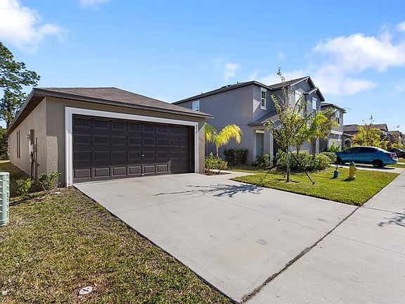 Welcome to the unique community of Saddle Creek. Here you will find walking trails, dog parks, playing parks, pool and plenty of nature. This neighborhood is conveniently located between Tampa and Orlando. I4 is just a short drive away for your commuting or just a drive to the parks for the day. Entering this amazing home you will find natural light flowing through out the home. This open concept lets you enjoy the wonderful backyard from your kitchen or living room. Large windows in every room give you a very open feeling and makes the rooms feel larger. Solid surface counter and great large tiles scream class.