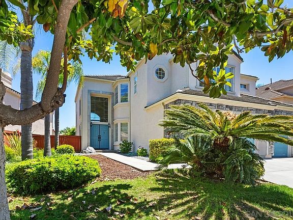 Welcome to this Emerald Heights 4-bedroom, 3 full bathroom, 3-car garage luxury hilltop home. As you enter, you will find a breathtaking circular staircase, 20-foot soaring vaulted ceilings, massive windows, and skylights throughout the entire space, revealing city lights and mountain views. Enjoy the serenity of having no neighbors in front or behind your home. There are three grand fireplaces throughout, including one in the large primary bedroom, exuding luxury and comfort. The primary bathroom is extra-large with a soaking tub, an impressive circular shower, dual sinks, and an expansive wardrobe closet. Cook on a new gas range built into a beautiful quartz countertop island as you look out the kitchen window at the harmonious blend of natural views and the distant cityscape. The kitchen also has an eat-in bar with enough room for a breakfast nook table. One room is located downstairs with a full bathroom attached for convenience. An indoor laundry room permits further convenience. Enjoy all the perks of a full-time guard-gated secured community, pool, hot tub, tennis courts, clubhouse/rec and exercise room, playground, and children’s pool, all with a very low HOA. Emerald Heights is the best-kept secret in San Diego! Don't miss this opportunity to own an exquisitely designed home in a prestigious community!