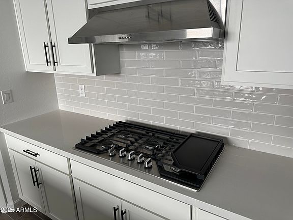 Features an open concept great room, gourmet kitchen with quartz countertops and island, shaker cabinets, stainless steel refrigerator and gas range. There are split tilt shutters throughout, water softener, and fully landscaped backyard with pavers, turf & gas stub ready for a BBQ. Upstairs offers a spacious primary suite with dual sinks, walk-in shower & walk-in closet.