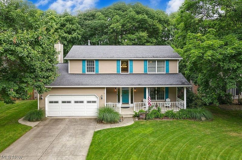 Come enjoy luxurious living in Ellet Woods, One of the most desirable developments in Akron. This captivating 3-bedroom, 2.5 bath is a perfect example of elegant colonial symmetry. The property is easily drivable to shopping and dining options and schools. Cross the threshold into a warm welcome that includes bamboo flooring throughout the entire 1st floor.and window light complemented by stylish fixtures. The spacious chef's kitchen charms with natural light,Quartz countertops and an attractive U-shaped layout. The feature-rich primary bedroom includes newer memory foam backed carpeting, walk-in closet and an attached luxury bath. The other two bedrooms located on the second level also have newer memory foam backed carpeting. The attached 2 car garage is wired for an EV charger. The EV charger does not convey. Exteriors includes a recently updated pressure-treated deck, a breezy front porch. Also: shed. Open the front door to a pleasant new life here in Akron.