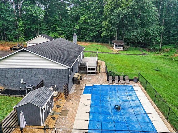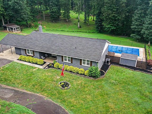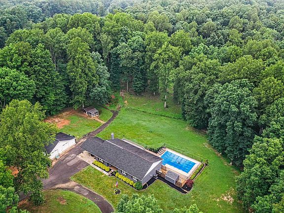 Charming ranch on 9.5 acres in a peaceful, tucked-away area of Orange County! This 3-bedroom, 2-bathroom home offers the ease of one-level living with an open-concept layout that includes living, dining, and an updated kitchen, all centered around a cozy wood-burning fireplace. Step outside to enjoy a spacious rear deck, and your very own fenced-in saltwater inground pool with a pool house/shed—perfect for summer entertaining. The property blends rural charm with modern comfort, featuring fenced space for small animals, a detached garage, and ample storage throughout. Recent upgrades include new flooring, a new refrigerator, updated outlets, brand-new hot water tank, encapsulated crawlspace, and more. Just minutes from the Town of Orange, this home is ideal for those seeking room to roam while still being close to daily amenities. A rare find offering privacy, flexibility, and a little taste of country living!