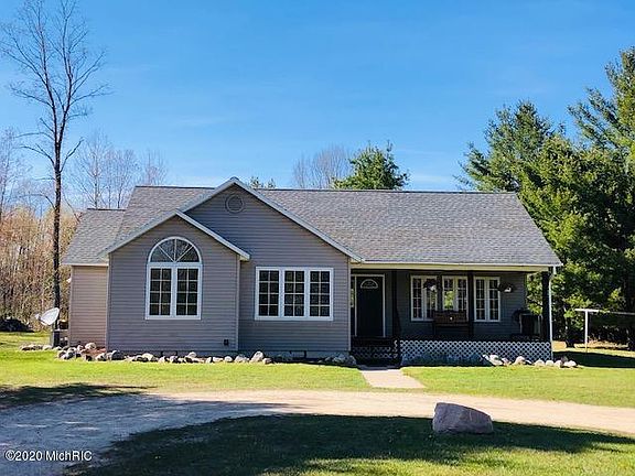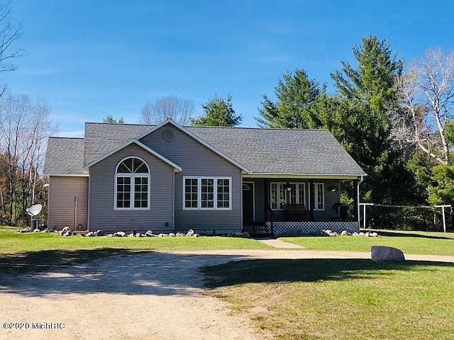 This modern 3 BR, 2 bath ranch style home sits on 8+ acres with over 1000 feet of Hersey riverfront meandering throughout. You'll fall in love every time you pull into this private setting. When you enter, you're greeted by the expansive covered porch leading you inside to the all recent updates. With all new painting and flooring throughout, you can just sit and watch the hummingbirds eat or look out to the pasture where horses graze. The 30 x 40 pole barn is already set up with stalls, fencing and 220 electricity. This property won't last long, call me today for a personal tour.