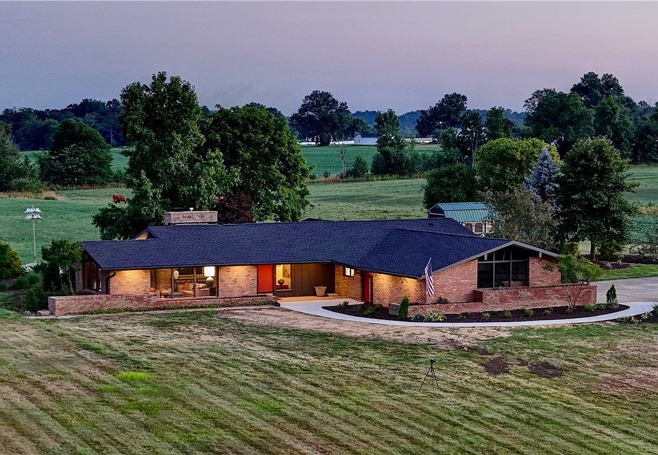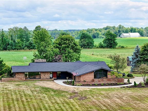Fall in love with this Magical Mid-Century Modern Ranch!! Home has been Lovingly Restored by Current Owner as a Forever Home. Nestled on 6 acres back off Center Road in Columbiana County. Greetings are met at the Foyer Overlooking the Living Room, Dining and Kitchen. Living Room with its Proud Exposed Beams, Vaulted Ceiling and abundance of floor to Ceiling Windows and Glass Doors, make for an engaging environment. A Striking large Fireplace separates the Living Room from the Formal Dining Room. Cozy up in Conversation with a Firelight Dinner while Surrounded by Nature. Remade Kitchen with its High End Appliances, Quartz Counters, Cherry Wood Flooring, and Seamless Cabinetry exemplify both Function and Style. Island with Twin Skylights positioned above the Workspace amplifies extra daylight and warmth into this location. Tucked away awaits Sleep and Slumber with 3 Bedrooms and 2 Full Baths. Primary Bedroom Boosts its own en-suite and entry to the Back Patio. First Floor Laundry directly off Attached 2 Car Garage, also a work of Art on its own. Plenty of Storage in the Full Basement. Architect Albert J. Sgro designed with the Inspiration from the Great Frank Lloyd Wright. "Relationship of the Human Being to Space and Space to Nature" Many, Many Updates and Delights. A Few to Mention: Well, Roof, Skylights, Cabinetry, Counters, Paint, Walkway, Water Softener, Wool Carpets, Bathroom Updates, Electric and so much more. Seller is also offering a Home Warranty. Full List of Updates and Venders Available. Call your Favorite Agent to take you through this Beauty Today.