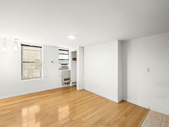 Prime location! This new studio is only one flight up with a beautiful eastern exposure of the East Village skyline. The large windows flood the space with natural light. The kitchen is equipped with updated appliances, a full-sized refrigerator, and ample cabinet storage. Two spacious closets keeps your space organized. The open-concept design allows for easy living, with room for sleeping, dining, and a living area. Tiled bathroom featuring modern fixtures and a full bathtub/shower combination. Intercom system to let in deliveries and visitors.