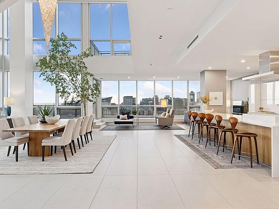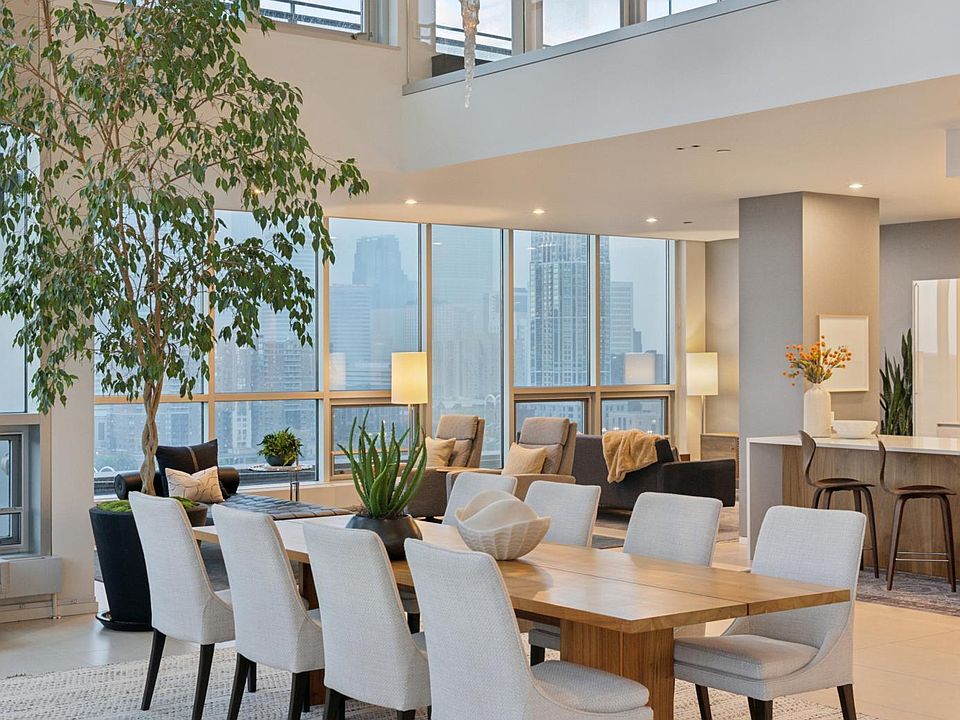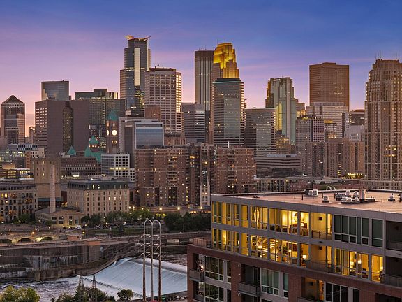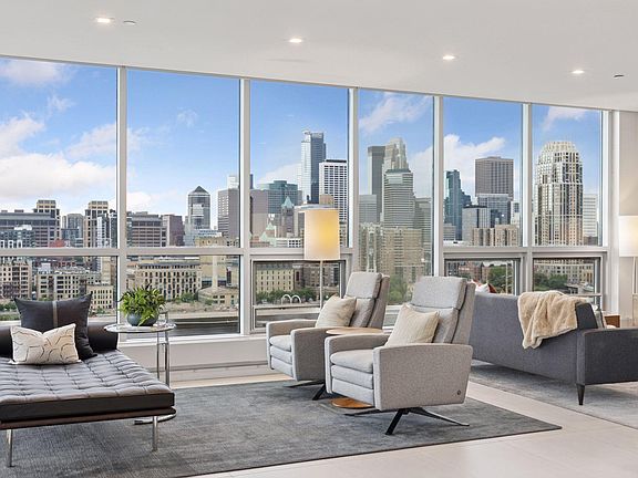 Breathtaking penthouse with unrivaled panoramic views of the entire Minneapolis skyline and Mississippi River including Saint Anthony Falls and the historic Stone Arch Bridge. This one-of-a-kind offering provides an elevated lifestyle experience for those seeking luxury, privacy, security, space, beauty, and exquisite designer finishes. With grand spaces for entertaining, the dramatic floor to ceiling windows and private terraces capture magnificent sunsets behind the city skyline. East facing bedrooms enjoy the sunrise. The expansive 5,600 square foot plan includes a semi-private secure elevator that travels directly from the four parking stalls to the residence entry foyer. Custom designer finishes throughout including a Valcucine kitchen and butler pantry, Lutron lighting, electronic shades, and smart home capabilities. Main level living with a primary suite plus an upper level additional primary suite, family room and third bedroom. Designated bathrooms for each bedroom. Inquire for full details and a floor plan.