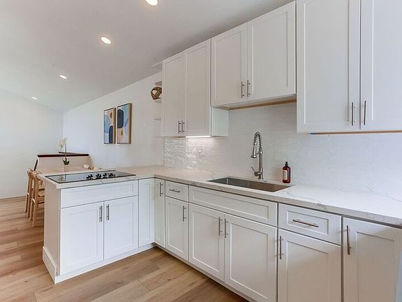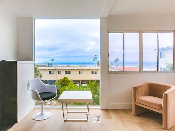 This fully furnished 1 bedroom 1 bath townhome has been completely remodeled. Huge for a one bedroom with an open floorplan, private balcony, ocean views, and a nook perfect for a home office. Luxury vinyl plank flooring, quartz countertops, stainless steel appliances, shaker cabinets, and stylish furniture. Bedroom opens up onto a private patio and beyond that is a green space that has several fruit trees. 1 car attached garage with washer and dryer. Separate storage space with plenty of room for multiple surfboards or bikes. 3 month minimum lease. All utilities and cable/internet are included. 3D tour available upon request.