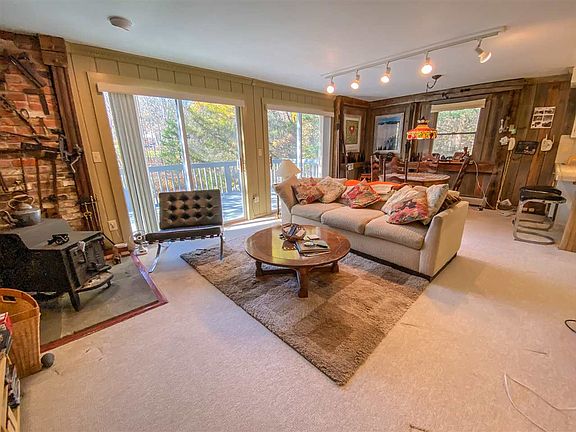 Very charming home located on Blue Brook Road just a couple miles from the Mount Snow ski resort. This 3 story chalet sits on a private 2.6 acre lot with wooded land behind and off a quiet dirt road. The home features 3 bedrooms and 2 baths in the upper levels, and a 1 bedroom mother-in-law apt downstairs. The living area is open concept with ample seating, dining, and kitchen space with breakfast bar. The upstairs bath has been recently renovated as has the metal roof. A great opportunity to have your own space to getaway, but also entertain. Lower level apartment bedrooom does not have legal egress,