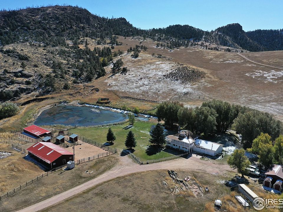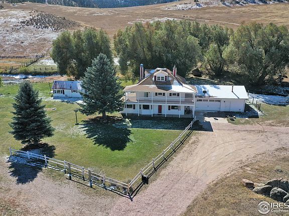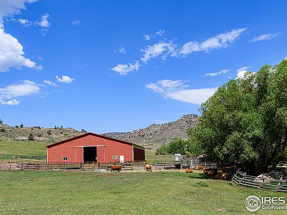 191-acre mountain ranch offers sustainable livestock opportunity, 45 mins from Fort Collins CO. Live water, outbuildings for livestock, cross fencing, and a 2,631 sf historic home, the ranch has a lot to offer. Built in 1909 the 5 bed 2 bath home boasts an updated interior that loses none of its traditional character. Rustic kitchen, back patio along creek, guest cabin, and more. 80x120 riding arena, 32X64 barn with pens, stalls and tack room. Pond, hay fields and mountainside.