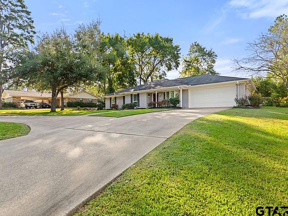 Welcome to this impeccable 3 BR, 2 BA home that perfectly balances comfort with style. This pristine property offers 2,303 SF of thoughtfully designed living space, complete with a 2- car garage and an inviting sunroom that brings the outdoors in. The heart of this home features a roomy kitchen equipped with abundant cabinetry, granite countertops, and a convenient butler's pantry for all your culinary adventures. Natural light floods the space through numerous windows, creating a warm and welcoming atmosphere throughout. Wood shutters grace all windows with the exception of the sunroom which has beautiful shades. The master suite provides a true retreat with its split bedroom design. Completing the space is a beautifully updated bathroom with double sinks, a walk- in shower, and a spacious closet. The guest bedrooms impress with their generous size, one with a cedar closet. Entertainment flows seamlessly from indoor to outdoor living. The woodburning fireplace in the dining area serves as a focal point, along with built ins and a wet bar. Two living areas provide generous room for entertaining, one area being more formal. Outside you discover a stunning large pergola adorned with LED lighting and a charming firepit area. The landscaping truly shines with professional attention to detail, featuring elegant pavestone and pea rock pathways that wind through the beautifully designed yard. Privacy meets style with attractive wood and metal fencing, while the circular drive with front entry garage adds both convenience and curb appeal. Every update had been carefully documented in Associated Documents reflecting the meticulous care this home has received. Located in the peaceful Hideaway Lake community, you enjoy easy access to Funtier Park, the Hideaway Clubhouse, swimming, golf, fishing, and boating. Nearby Lindale offers award winning schools, delightful dining, and shopping options. This home offers that rare homey feel that makes everyday living feel special.