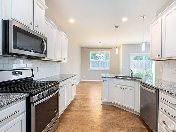 Location!! Location!! Close to RTP, RDU Airport, Duke & UNC!! 7 Miles to DUKE! 3.5 Miles to RTP! HOME AVAILABLE NOW! Two Car Garage - Bright and airy TownHome! Highly upgraded Stone Front with complete Hardwood Floors on 1st level, Granite Galore, Stainless Steel Appliances, SS refrigerator! Private large yard backing to woods adds the perfect ambiance to the view from the family room. WOW, factors throughout the home as you walk inside! The kitchen has a very functional layout and gleaming granite countertops. You will love the gas range. Upgraded Cabinets, recessed lighting, and Large Pantry. Master Bedroom with deep tray Ceiling has TWO Large Master walk-in closets. Fantastic finish! 2nd Floor Laundry. BRAND NEW Washer & Dryer included. Good size secondary bedrooms with plenty of light! Second bedroom with walk-in closet. All bedrooms with Fan/light. A private Wooded Backyard with a large patio adds to the relaxing atmosphere of this home. Plenty of Storage throughout the home!! 2-inch Blinds on all windows! Location!! Location!! Close to RTP, RDU Airport, Duke & UNC!! 7 Miles to DUKE! 3.5 Miles to RTP! 3.5 Miles to RTP 7.5 miles to Duke. 8 miles to South pointe Mall 10 miles to RDU 12 miles to UNC. Swimming Pool, Dog park in the community! Please see pictures as words can only say so much and do not do justice to this home. The location adds to the already brilliant floor plan and excellent finish of this home! Close to RTP, RDU Airport, Duke & UNC!! A must-see Available NOW! Absolutely NO Smoking in the home! Pets considered with pet rent. PLEASE APPLY WITH information on place of work, rental start date, approximate credit score, pets if any, the reason for the move to help process faster for an appointment. Tenant pays Utilities. Owner Pays HOA. HOA maintains the yard. Minimum Credit scores of 670+ a MUST. Pets considered with pet rent.