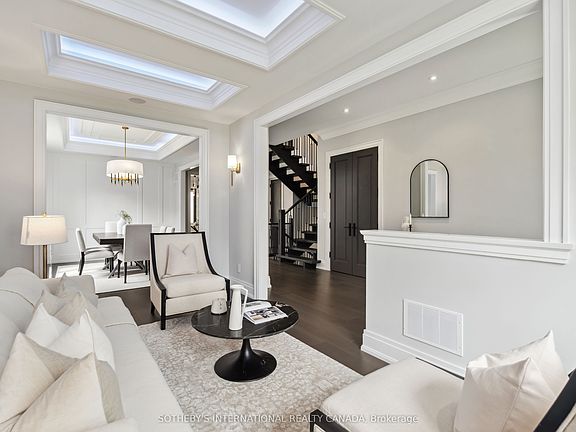 Welcome to The Elevé Residence - a home that conveys quality, elegance and light. It is an architecturally striking, brand-new custom home built with uncompromising attention to detail and refined craftsmanship. From the moment you step inside, the quality of design and pride of build are unmistakable. A stunning maple wood staircase anchors the main level, enhanced by coffered ceilings with ambient inset lighting, solid wood interior doors, and rich hardwood flooring throughout. The culinary eat-in kitchen is a true centerpiece, featuring custom maple wood cabinetry, a waterfall quartz island, matching backsplash, and premium built-in appliances that seamlessly flows into a charming breakfast area and sophisticated great room with a floor-to-ceiling quartz fireplace and custom built-ins. Every closet in the home is fitted with custom organizers, blending elegance with practicality. Enjoy effortless comfort with automated Hunter Douglas window treatments, integrated surround sound, and hardwired smart home connectivity tailored to the demands of todays modern family. The home has been meticulously engineered with two furnaces, two AC units, and dual sump pumps for optimal efficiency The garage is spray foam insulated, outfitted with pot lights, and provides direct access to a well-appointed mudroom. Upstairs, a thoughtfully designed sunken laundry room is equipped with a protective membrane system to guard against water intrusion-function meets foresight. Retreat to the expansive primary suite featuring his-and-her walk-in closets and an incredible 6-piece wellness-inspired ensuite, creating a true spa-like atmosphere. With 7 luxurious bathrooms, a private nanny/in-law suite with ensuite, a 3-stop private elevator, and flawless interior flow, this home was made for elevated, multi-generational living. Outside, enjoy a fully fenced backyard, elegant interlocking stone driveway, and stunning curb appeal that makes a statement at first glance.
