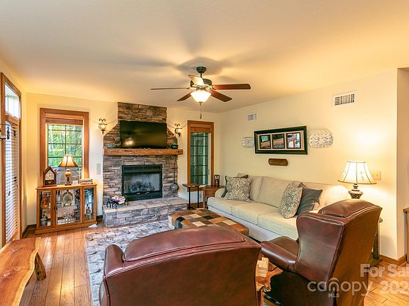 Two bedroom, two bath CAMPS AT CREEKSIDE CONDO on the lower level with long-range mountain view and privacy at MOUNTAIN AIR. Open floor plan features wide-plank, wood floor and stone fireplace with gas logs and comfy furnishings for relaxing by the fire. Kitchen is fully stocked with everything you need except for groceries! Spacious deck with mountain views and trees for privacy. Lovely deck furnishings perfect for entertaining or just enjoying. Your HOA maintains the beautiful landscaping with blooms from Spring through the end of Fall. Close to walking/hiking trails and Creekside park is an easy walk away. New door lock/code, electronic WIFI thermostat for easy app control. Beautifully Furnished and ready to enjoy! Great investment condo with rental history. FURNISHINGS INCLUDED.