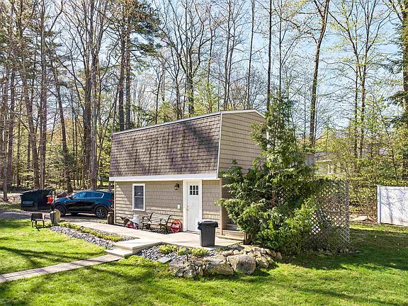 Nestled in desirable Dockham Shore Estates, this beautifully maintained home has had just one owner since 2001. A newly paved, landscaped driveway offers parking for 6 cars plus an attached garage with attic storage. Inside, oak hardwood floors flow throughout. The spacious kitchen features hand-crafted oak cabinetry, a center island with built-in stove, a breakfast nook, and a dedicated dining area. The first-floor master suite is a true retreat with white marble tile, porcelain flooring, a deep soaker tub, walk-in closet, two additional closets, and its own mini-split system. Enjoy peaceful mornings on the front porch overlooking the landscaped yard. The private backyard includes white PVC fencing, two Lifetime sheds, and a hot tub. A two-story man cave adds extra appeal with wood ceilings, recessed lighting, a specialty garage door for a golf cart or sports car, a workbench, and a separate driveway with room for 4 additional vehicles. Enjoy biking and walking in the neighborhood or take the golf cart for a short ride down to the private beach with a day dock and boat launch. Nearby amenities include Gunstock, BankNH Pavilion, Weirs Beach and Gilford’s public beach. This property blends lifestyle, comfort, and convenience—don’t miss it!