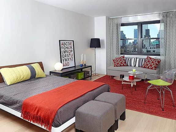 24-hour doorman, fully equipped gym, furnished rooftop terrace, resident lounge, elevator, package room, and live-in super. Pet-friendly.