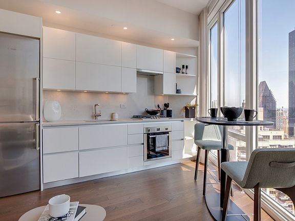 live Above It All At Summit. From your private drive court enter a sanctuary that exudes modern elegance and timeless sophistication, an enclave graced by natural stone, the grandeur of 30-foot ceilings, and a luminous glass chandelier and water feature. Indulge in a full array of lifestyle services that take care of dog walking to travel arrangements and everything in between. You will find excellence in every detail of the studio to two bedroom residences, each appointed with floor-to-ceiling windows, custom built-out closets, kitchens with Scavolini cabinetry, Quartz countertops and full-height backsplash and a suite of integrated Bosch appliances. Each home comes equipped with its own washer and dryer. Bathrooms include a custom cloud-white Italian vanity, oversized, recessed medicine cabinet and mirror, floor-to-ceiling tiled walls and a spa-like shower and soaking tub. Summit New York offers over 45,000 square foot of indoor/outdoor entertainment and amenities which includes; Private Drive Court and Valet Parking 24- hour Doorman and Concierge Complementary Cappuccino everyday Indoor heated 18 -meter lap pool, Jacuzzi, Sauna and Steam Room Full Court Basketball and Squash Court Fitness Center featuring Techno Gym & PELETON Equipment Personal Training and Treatment Rooms Complementary Instructional Classes Locker Rooms Gaming Lounge with Billiards and Foosball Tech Lounge Children's Playroom Golf Simulator Backyard Sun Deck with Outdoor Screening, Children's playground, BBQ and Fireside Seating Summit Sky Lounge with Fireside Seating Private Dining Room with Separate Catering Kitchen Outdoor Terrace with BBQ grill Service Bar with Private Wine Lockers. VIEWS will Differ from Photos as on a lower floor. NO SHORT TERM LEASES.
