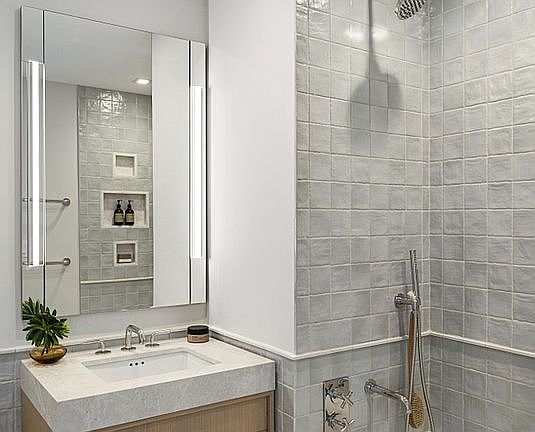 Separation of bedrooms allows for privacy. Both bedrooms are corner rooms that have double exposure and the primary bedroom boasts a full-size walk-in closet, seating area and four fixture en-suite bath outfitted with mosaic marble flooring, modern walnut vanities and custom glaze ceramic tiles Waterworks features are throughout. The second bedroom has ample storage space with views to the north and west. Secondary baths feature bespoke ceramic tiles with marble flooring and elegant vanities. Multi-zoned HVAC and washer dryer combinations complete each residence ensuring year-round comfort.