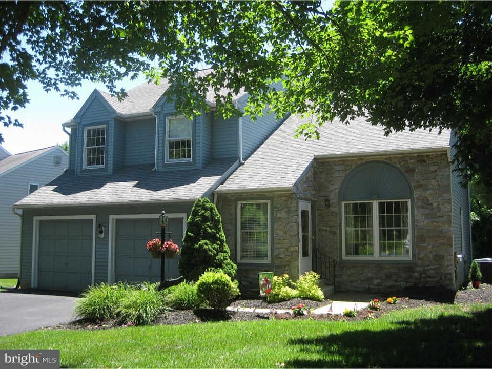 The work has been done for you...recently updated 4 bedroom, 2 1/2 bath Colonial in the Silversmythe community located in New Britain Township. The living room has a cathedral ceiling which takes you upstairs to a balcony overlooking the beautiful maintenance free hardwood style floors, which are throughout the main level. Downstairs the living room leads into the formal dining room accented with a raised chair rail. The kitchen has new Granite Counters and brand new stainless steel Whirlpool appliances: a side-by-side refrigerator with ice maker/water dispenser, dishwasher and 4-burner electric stove. Do not miss the newly designed kitchen island with seating for 3. Step down to an open family room area boasting a stone wood burning fireplace and sliders opening up to a new deck and large backyard. The entire house has had a make-over: interior completely re-painted, a new pedestal sink and toilet in powder room, 5-1/4" baseboards throughout the lower lever,raised chair rail in dining room, updated lighting fixtures and switch plates, and brand new wall to wall carpet. Walk upstairs and through double doors into a spacious master bedroom complete with hardwood floors and a large walk-in closet . Find 3 additional bedrooms upstairs and lots of closets for storage. Venture down to a full basement with 8 foot ceilings and metal shelving if there is a need for additional storage. Extra features: heat pump with an oil back-up furnace, radon remediated, a back-up water driven sump pump. Large level backyard with the back perimeter lined in fruit trees. 2 car garage. It is a short walk to North Branch Park, and minutes to Lake Galena and Peace Valley Park. The Chalfont R5 train line is an easy commute into Philadelphia. Located in the Central Bucks School District with easy access to the 202 bypass, Rte 309 and the PA turnpike.