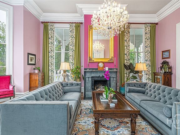 Steeped in Savannah’s architectural legacy, this distinguished Victorian residence exemplifies 19th-century craftsmanship and timeless design. Built for Virginia Lloyd Drane and Captain Henry Marty Drane, the home showcases graceful proportions, intricate detailing, and beautifully preserved fireplaces balanced by modern updates throughout. The main house offers four ensuite bedrooms—including one on the main level—each a refined retreat blending historic charm with contemporary comfort. A separate carriage house adds versatility with two additional units, ideal for guests, a studio, or private office, and may also serve as short-term vacation rentals or long-term income opportunities. A serene side porch opens to a walled garden perfect for entertaining, while rare off-street parking enhances convenience. Located in Savannah’s Landmark Historic District, this residence offers walkable access to Forsyth Park, fine dining, and cultural landmarks.