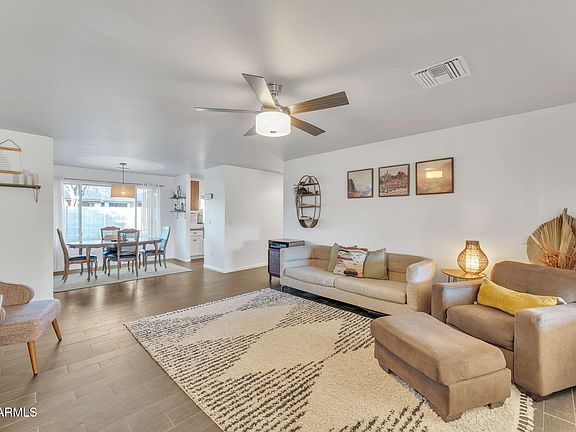 Discover the ultimate in comfort and luxury with this stunning 4-bedroom, 2-bathroom north-south facing home! The kitchen is a chef's dream, featuring granite countertops, stainless steel appliances, ample cabinetry, a pantry, and a charming bay-window dinette. The master suite offers French doors to the backyard, dual sinks, and a walk-in shower. Step into your private oasis with a Pebble Tec diving pool, top-of-the-line synthetic turf, and a custom putting green featuring SYNLawn's Super Yarn™ technology—engineered for Arizona's heat, it stays cool, resists microbes, and reduces static. The backyard also features RV parking, two RV gates, and a concrete slab with power and water lines. Best of all, NO HOA! Your dream home awaits!