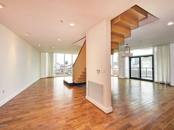 The very best of city living in a fabulous townhouse style condo. Floor to ceiling windows and balconies on both levels overlooking the Louisville skyline and river. Stunning staircase designed by renowned architectural firm, Deleon and Primmer. One of a kind craftsmanship makes this a true piece of art. Open floor plan with great room, dining area and eat in kitchen with center island are perfect for entertaining. Upstairs the primary suite has spacious bathroom with a soaking tub, separate shower, walk-in closet. Guest bedroom, bath and laundry also on the second floor. 24 hour secured lobby entry, elevator, pool, club room with conference room, party room with catering kitchen and terrace, fitness center, yoga room and bike storage and garage parking.