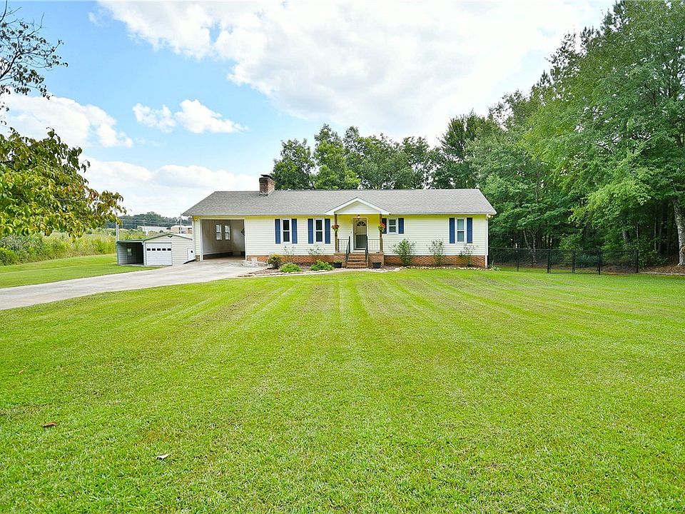 Your search is over! This charming and well-maintained ranch with basement in a private country setting is ready for new owners. Weekend fun to Greenville, Easley, Lake Keowee and Table Rock Mountain is just minutes away, but fun and relaxation can be had right here in this home that offers so much. Hosting is both fun and easy in this popular open floor plan concept with updated kitchen with stainless appliances, quartz counters, pendant lighting, and island perfect for serving and extra seating. For these upcoming cooler nights, a brick wood-burning fireplace anchors the living area and will provide a cozy atmosphere. Looking for a peaceful space to have your morning coffee or to end your day surrounded by wooded greenery and privacy? A sunroom sits at the back of the main level and offers options as a flex space maybe for an office, playroom, or study. Off the kitchen, you'll appreciate the spacious laundry area that doubles as a drop-zone coming in from the carport. The primary bedroom with full bath and second bedroom on the main level both have walk-in closets. Downstairs is the heated and cooled walk-out basement offering a 3rd bedroom and possible second living area. Let your creative spirit run free in this space. Part of the basement has epoxy floors for easy maintenance and is carpeted for comfort in the bedroom/living space. Walk out to the covered patio area and into a large, manicured and fenced back yard--an entertainer's delight! Picture the fun times here! Perfect for pets. On a little less than one acre, no fear of disturbing neighbors--can't even see another home for the trees. There's more...a building with power with 1 car bay, workshop, and a covered parking space. Roof age 5 years. HVAC 2021. Grab your agent and come check-out your next home! Open House 9/23, 10-1 and Sunday 9/24,2-4.