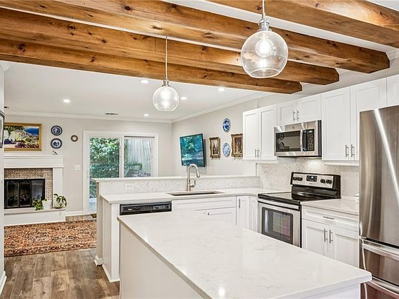 In the heart of Decatur, this beautifully updated 2-bedroom, 2.5-bath townhouse offers exceptional value, style, and convenience. The spacious open floor plan showcases hardwood floors throughout, wood-beams in the kitchen, and a cozy fireplace in the living room. A private courtyard provides the perfect space for outdoor dining and a safe retreat for pets. Both bedrooms are generously sized, each featuring an en suite bath that has been tastefully updated and a large walk-in closet. A full-size laundry closet is conveniently located upstairs on the bedroom level, with a washer and dryer included. The oversized one-car garage includes a Tesla charging station and is attached to a separate storage area ideal for a workshop, fitness space, or additional storage. The current owner has made numerous improvements, including a tankless hot water heater, new roof and cement siding, additional lighting, plantation shutters on all front windows, upgraded attic insulation and extensive landscaping in both the front and back yards. (A full list of all improvements is available upon request).This sought-after, friendly community of just 32 homes offers a relaxing pool and a prime location — walking distance to Decatur Square, local shops, and restaurants.