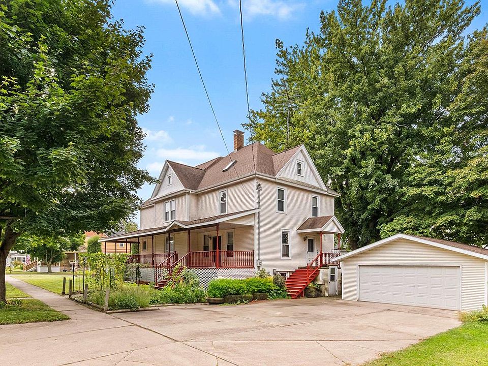 Exceptional Old-Style beauty in the city of Ripon! Classic details like 9ft ceilings, wide hardwood trim, built-in hutch, and hardwood floors throughout- fill this house with charm! Meanwhile-AC, second level laundry, second kitchen in lower-level, and large detached garage, make this home modernly convenient. Things you will love: Large, wrap-around porch, spacious workshop area in the basement, 5 bedrooms AND a finished 3rd floor loft space w/ full bath. Updates include: New roof-2014, windows-1992-1995, new furnace/a/c-2024. Tuck pointing on foundation-2023, new heat pump in attic-2025. See docs for more updates.