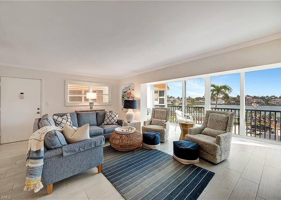 A seamless blend of modern sophistication and coastal charm! Enjoy stunning views from this renovated condo on Moorings Bay with direct access to the Gulf of America. The bright, open floor plan features elegant upgrades with light wood-like tile floors, custom closets, motorized blinds and plantation shutters. Enjoy the convenience of walking to the beach or dining and shopping at the fabulous shops nearby at Venetian Village.