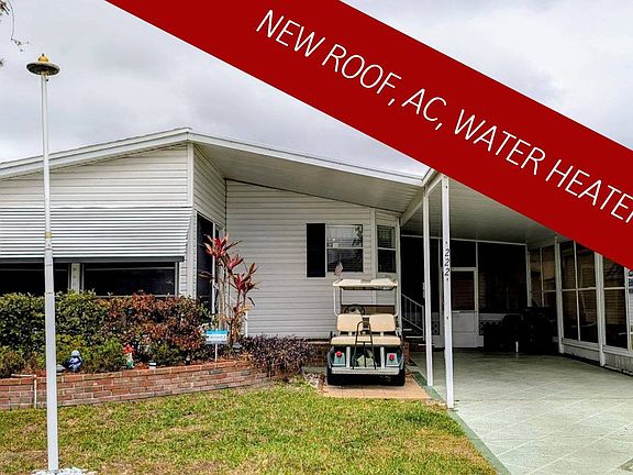 Reduced price along with brand new AC unit pairs well with this homes new shingled roof installed inch March of 2025. A great opportunity! Perched on a quiet street just one block from the Community clubhouse and Olympic size pool! Fully furnished with everything you need to start living the Florida dream. Two bedrooms, two baths, and two lanai's plus ample storage space in the oversized 12' x 16' shed. You will find laminate and tile flooring. Kitchen appliance suite is just 3 years old with 5-year-old washer and dryer tucked behind bifold doors nearby. Golf cart included needs TLC. One pet under 30 lb allowed. This active Community provides terrific amenities along with the Olympic size swimming pool is a large Sun deck and a resident outdoor kitchen. Residents can enjoy the fire pit by the pool or partake in a friendly game of tennis or pickleball on the courts. There's also a shuffleboard, horseshoe and cornhole courts. The Community clubhouse features a state-of-the-art fitness center and a grand ballroom that hosts various gatherings and planned activities including dinners, dances, and entertainment. Additionally, there is a billiard room, craft room, and library for residents to use at their leisure. 2026 monthly lot rent will be $1,120 plus taxes and will include lawn mowing and trimming, internet and cable plus two HD boxes and a modem and router. Just a short drive to area attractions as well as Florida's famous Gulf Coast beaches. Shopping and dining nearby. New retail coming to area soon! Call for appointment today, open house on Saturday's 11:00 to 2:00 p.m. Contact listing agent today! All listing information is deemed reliable but not guaranteed and should be independently verified through personal inspection by appropriate professionals. Integrity Mobile Home Sales cannot guarantee or warrant the accuracy of this information, measurements, or condition of any property. Measurements are approximate. Lot rent is subject to change.