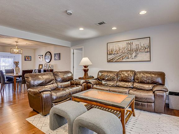 Just off the kitchen, a flexible room, a few steps down, provides extra privacy and could work as an office, playroom, or anything else you need. A bedroom off the living room includes a large walk-in closet and leads to the laundry room, which has additional storage. Two more bedrooms are located on the other side of the home, sharing a full hall bath.