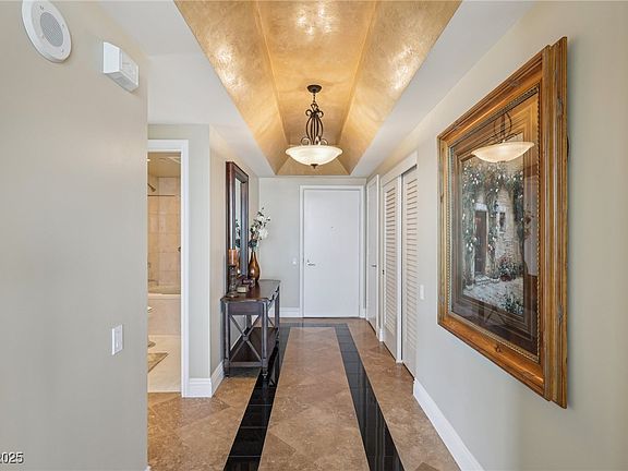 Experience elevated urban living in this immaculate 2-bedroom, 2-bath corner residence on the 32nd floor of Turnberry Towers. Floor-to-ceiling windows anchor the living space, framing panoramic views of the Las Vegas skyline and remarkable mountain sunsets. An expansive open-concept layout ideal for entertaining, featuring a gourmet kitchen with GE Monogram appliances and a wraparound granite countertop. Two private terraces offer distinct perspectives of the city, perfect for morning coffee or evening cocktails under Las Vegas' stunning twilight sunsets. Situated between the iconic Fontainebleau and the vibrant Downtown Arts District, just moments from boutique shops, top-rated dining, craft cocktail lounges, and the latest additions to the Strip. Enjoy an array of luxury amenities, including a resort-style pool and spa with waterfalls, tennis and pickleball courts, fitness center, conference room, resident lounge, 24-hour security, and valet.
