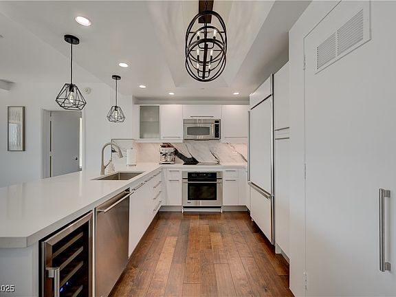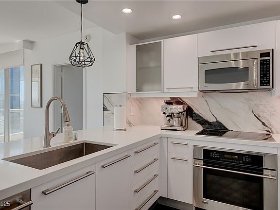 A Rare One-of-a-Kind Turnberry Towers Luxury Condo, located on the 33rd floor with views of the spectacular strip city and mountain from every angle. There is no other like it! This fully furnished, designer-upgraded 1,399 sq. ft. residence features two beautifully furnished private balconies for true outdoor living, a new custom fireplace, and an upgraded chef’s kitchen built to impress. The spa-inspired primary suite features its own balcony, a Jacuzzi tub, and an oversized walk-in shower. Resort-style amenities complete the experience, including a cascading pool and spa, tennis & pickleball courts, a putting green, a state-of-the-art fitness center, a dog park, a 24-hour concierge, and valet parking. For peace of mind, enjoy 24-hour guard-gated security. This is a true turnkey masterpiece in the heart of Las Vegas, just bring your toothbrush and clothes.