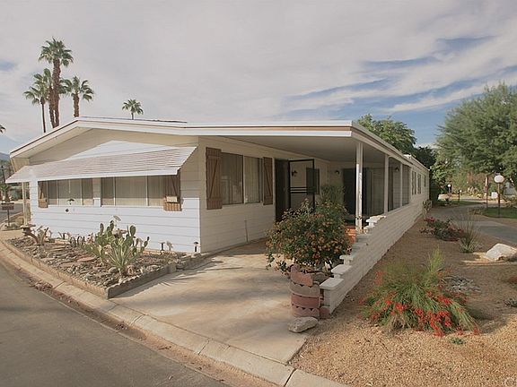 Doublewide manufactured home has a 433 on Permanent Foundation 3 bedroom, 2 bath. All wood laminate new floor throughout Bathrooms and Laundry room new Tile flooring, new paint inside and out, Ceiling Fan through out, large and spacious with open floor plan, Fantastic Mountain view from the carport and side of the home. This home is located in El Dorado Park and you own the land and designated area for RV parking. Active Adult (55+) community in Palm Springs. Low HOA includes water, trash and amenities of clubhouse, exercise/fitness room, 2 pools, spa, sauna, tennis courts, greenbelt area to walk your dog--easy in,easy out from back gate of park, walking distance to tennis courts and 1 of the 2 pools. Park is in wind free south Palm Springs, minutes from two 18 hole Arnold Palmer designed golf courses (golf cart away, actually), airport, downtown Palm Springs. Target Center and Trader Joe's just west of this gated community. Local bars, restaurants, movie theaters all around.