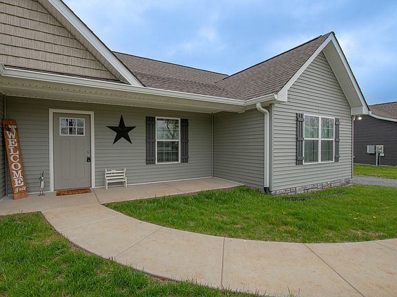 This spacious single-level 3 bedroom 2 bath 2022 construction features vaulted ceilings with an open concept floor plan, beautiful flooring & lighting throughout, custom cabinetry, & granite countertops in the large kitchen with a custom island. The primary bath showcases a dual vanity with large walk-in closet. Outside features a covered front porch & also includes a concrete patio in the back - all on .69 acre. Great location - just minutes from town & walking distance to the golf course.
