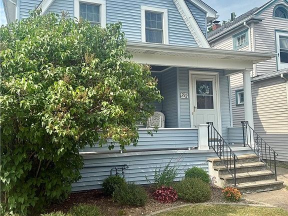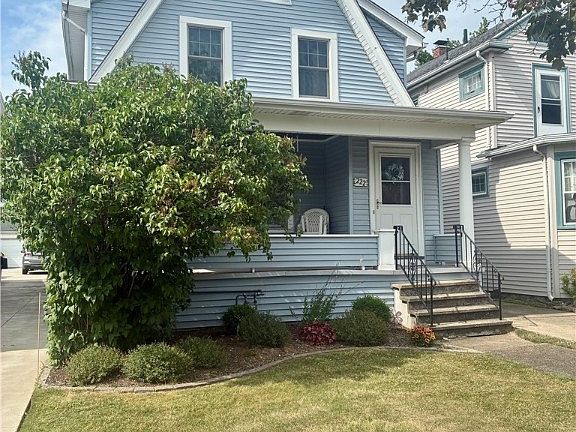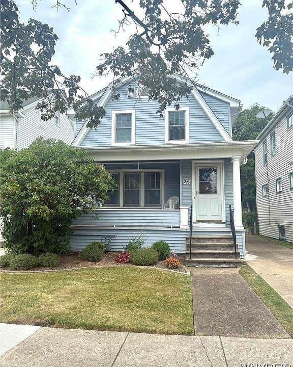 Charming Kenmore Dutch Colonial on extra deep fenced lot. Beautiful covered porch before you enter the front vestibule. Classic woodwork mostly painted white. Bookcases in living room flanking brick fireplace. 1/2 Bath added on first floor. Slightly updated gray kitchen with stainless refrigerator. Upstairs has 3 bedrooms & 4th is used as a den. Hardwood floor under all carpets. Many newer windows (Renewal by Anderson) 2/2025. Forced air Lennox furnace 8/2024. Vinyl siding and roof 2010. Sump pump 2023. Glass block windows. Well maintained grounds & oversized stamped concrete rear patio. Bring your finishing touches!