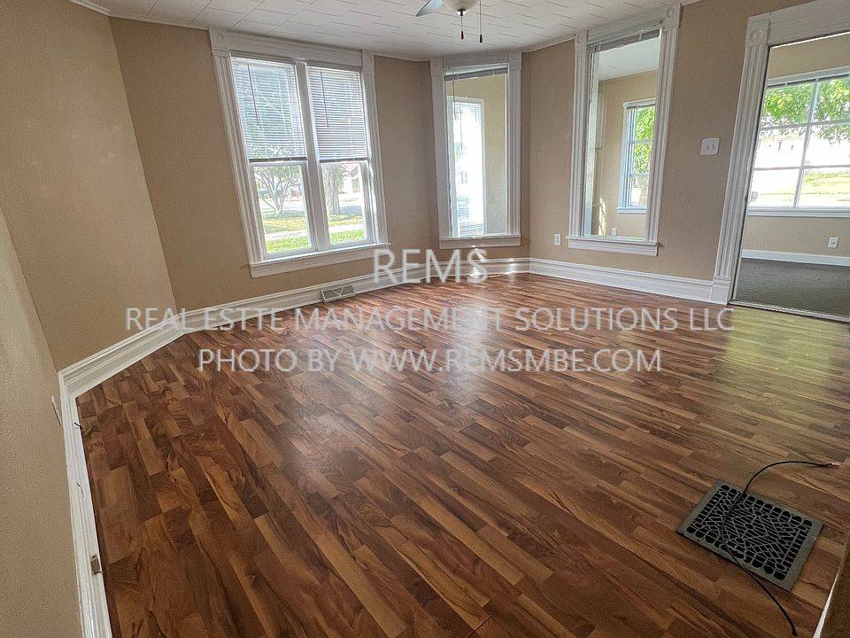 Large beautiful living room. Large kitchen with adjacent dining area. Refrigerator, gas stove, dishwasher, microwave and washer/dryer. Full bathroom with bathtub. Newer furnace and thermal pane windows throughout. New central AC and Heat.
