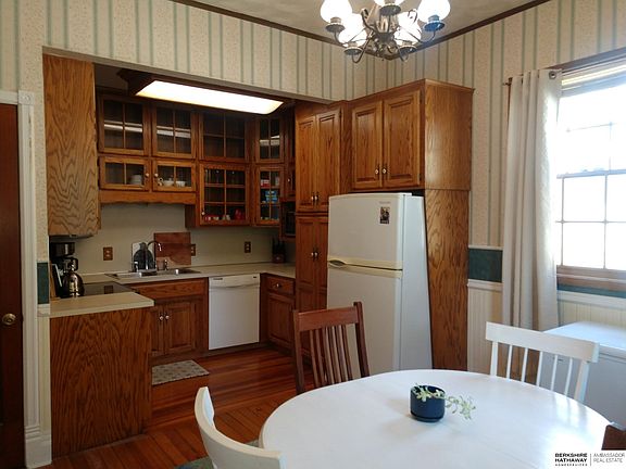 Very cool turn of the century beauty! Much love, care and attention to all the details. Step inside to discover 10 FT. ceilings, original wood floors & trim. Newer 6 pane windows, siding and down spouts. Large living room with pocket doors. Cozy den with wood burning stove. Formal dine. Big eat-in kitchen with custom cabinetry,Pantry. Appl included. 10 ft ceilings. 3 enclosed porches & swing. Whole house fan. Big Primary bedroom with enclosed porch/TV room. Great views of Historic Downtown. Main floor utility. Venture downstairs to workshop area + 2 car garage. Low utilities. HVAC has been professionally maintained annually. This place feels like HOME SWEET HOME!! Walk to town, PO, Moms Café & Main St stores! You will be glad you didn't pass up on an opportunity like this. Quaint & picturesque Private rear garden/ sitting area .Easy commute to down town Omaha to!!CLOSE TO SCHILLING WILD LIFE PRESERVE & Missouri River Boat Dock. ADT Security system NEW & is owned. Additional pics soon!