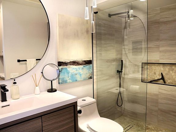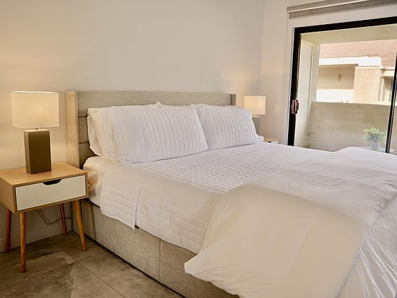 Enjoy this fully remodeled condo in the heart of Plaza Villas. You could not ask for a better location, steps away from downtown Palm Springs. Walk to Agua Caliente Casino or your favorite shops on the main drag. This 1 bedroom 1 bath condo has been meticulously renovated. New kitchen, new bathroom, new furniture. Turnkey furnished, the complex boasts: 2 swimming pools and spa as well as tennis court. Queen size sleeper sofa sleeps 2 adults as well.
