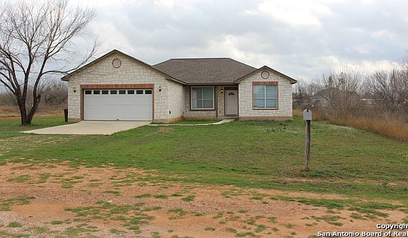 This brand new home is located approximately 30 minutes south of San Antonio and is minutes from I-35. This home is on 1/2 acre of land with the option to purchase on 1 acre. Neighborhood Description Quiet community with ease of access to highway.