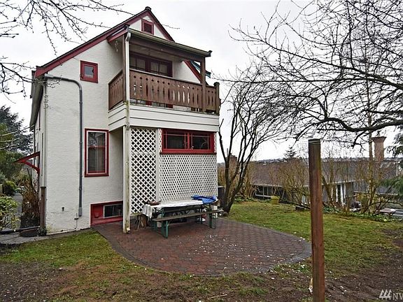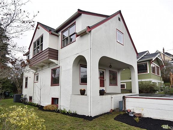 Elegant 1909 2-story home perched on the Phinney Ridge/Fremont hillside w/views of the valley, the mountains & Sound; lovingly maintained inside & out; 4 BRs & 2 BAs, plus another BR & BA in the downstairs apartment; lovely period details like coved ceilings, glass doorknobs, arched entries, wainscotting, hard & soft wood floors. Sun-bathed living room & country kitchen. Brand new roof & new electric box, new energy-efficient heat pump, & newer double-pane wood-framed windows throughout 2nd flr.