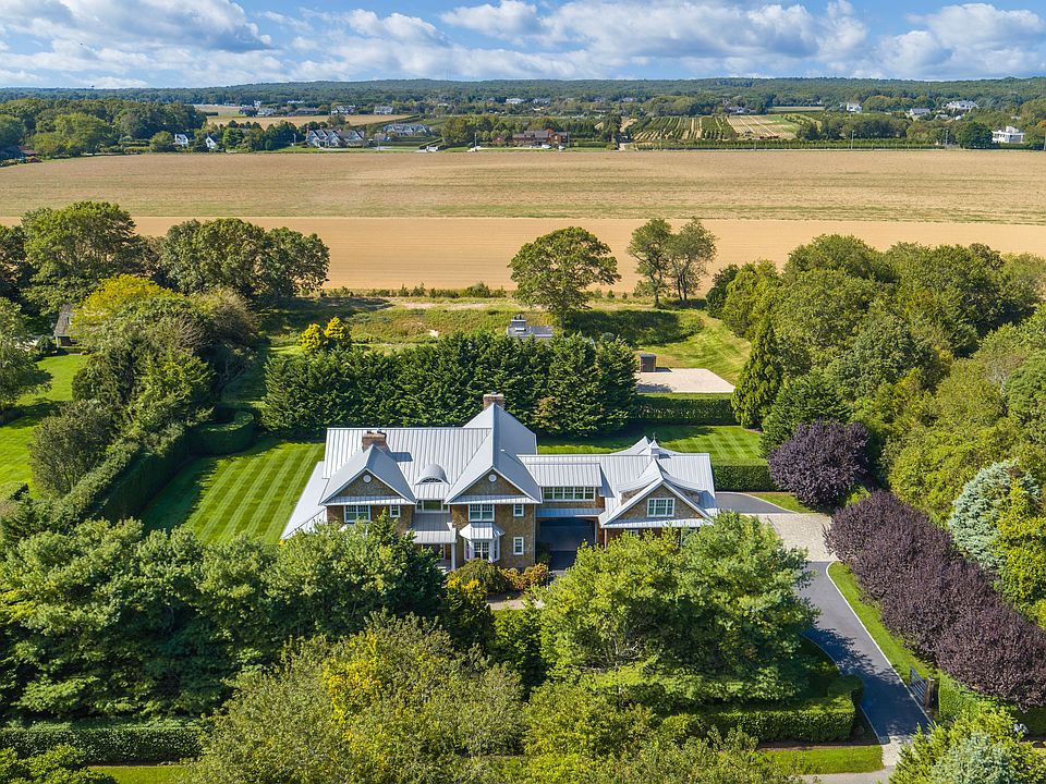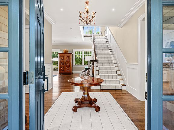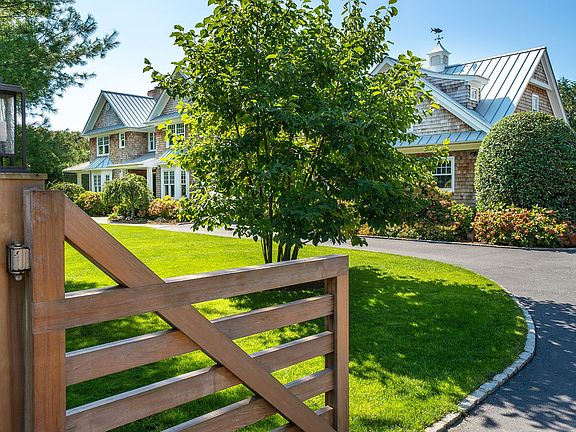 An elegant Water Mill retreat where luxury meets effortless Hamptons living. From the sweeping driveway to the warm and inviting foyer, this 5-bedroom home instantly sets the stage for refined living in the heart of Water Mill. The first floor includes an en-suite guest bedroom, formal living and dining rooms, and a soaring two-story great room. Here, exposed 100-year-old beams and a dramatic stone fireplace rising to the 28-foot ceiling showcase craftsmanship and custom details rarely found in today's spec homes, while the chef's kitchen provides a warm center for gatherings. Upstairs, four additional bedrooms include a primary suite with private bath and luxurious finishes, complemented by a convenient laundry and private office. Outside, a wraparound covered porch and the beautifully landscaped grounds surround an in-ground heated pool, creating your own private summer oasis. The property also offers a fully outfitted garage, designed with the same level of care as the home itself. Epoxy flooring, a dedicated gym area, and a professional lift for additional sports car storage make this space both highly functional and an extension of the home's luxury lifestyle. Further enhancing its value, the residence sits within the R-40 zoning designation with a rare full clearing allowance in the Aquifer Overlay District - a significant advantage that provides flexibility and opportunity for future development or expansion. This Water Mill estate combines timeless refinement with modern amenities and unique advantages, presenting the ideal opportunity.