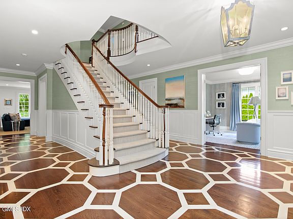 Stunning sun-filled 6 bedroom custom home in coveted Milbrook Association. Chic modern interior blending contemporary elegance with traditional warmth. Bay-windowed formal rooms; home office, oversized family room with fireplace opens to spectacular kitchen with 7-ft granite island. All bedrooms are ensuite and filled with light. Primary bedroom is so special with fireplace, sitting area, 2 walk-in closets and luxury marble bath. Tall ceilings and hardwood floors throughout. Huge lower level (not included in sq ftge) has bedroom/bath, potential wine cellar and media room, 2nd mudroom and great room. The backyard is fenced and totally private: level play area, fire pit and terrace. Around the corner from private Milbrook Club, minutes to train, Greenwich Avenue and schools!