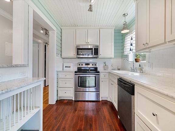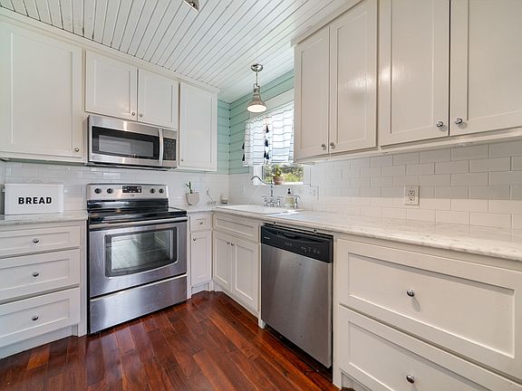 Location and House are Spectacular, Updated nestled on a huge lot, this cozy home features hardwood oak flooring, with modern luxury Style. Cozy mock fireplace, gourmet kitchen with lots of counter space, appliances, Washer/dryer stack units behind the barn door in hall way, updated bath features tile wall to floor, you will love it schedule your appt today.....